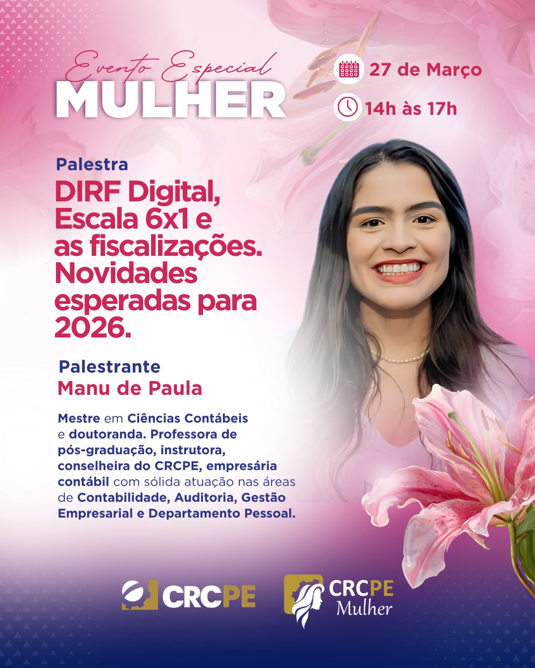 Entre os destaques, a conselheira Manu de Paula falará sobre DIRF Digital, escala 6×1, fiscalizações e novidades esperadas para 2026, trazendo reflexões sobre mudanças trabalhistas, impactos da DIRF nas malhas fiscais, erros recorrentes e a preparação de profissionais e empresas para o próximo cenário.